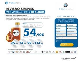 Revisão Simples para viaturas com + de 8 anos. Não arrisque. Aqui o barato nunca sai caro. Faça a revisão simples do seu carro com quem sabe e a preços fixos. A rede de oficinas do Grupo Salvador Caetano garante-lhe a melhor qualidade e o melhor preço do mercado. Para todas as marcas. Pela sua segurança, consulte-nos.